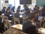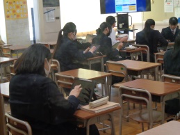 3年生の教室は今日受検の生徒が多く、いつもの半数にも満たない少ない人数ですがしっかりと学習に取り組んでいます。仲間のがんばりを願いながら、力をつけるため一生懸命です。