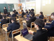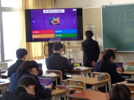 今日の朝、1学年朝会でした。寒さが厳しいので、体育館ではなく暖かい教室でリモートでの朝会です。4期テストが近づいてきました。今日の学年朝会では、学年委員が作成した4期テストでの各教科の出題範囲からの4択クイズをみんなで解きました。個人の成績が上位のランキングで示されるため、みんな一生懸命です。楽しく学ぶ1年生。4期テストのがんばりに期待しています!