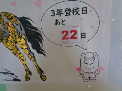 今週で1月が終わり、来週から2月になります。3階の3年生教室等に向かう階段を上ると、大きな掲示物「2月の学年目標」が見えます。最高学年として卒業まで頑張る姿を後輩に見せるという、頼もしい目標です。今日から公立入試を中心にした進路相談会、明日は私立入試、来週は私立入試と4期テスト。3年生、踏ん張りどころです。ノンストップで真摯に卒業までがんばり抜く姿をみんなでみています。