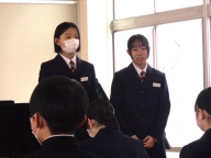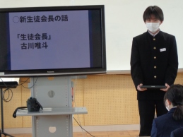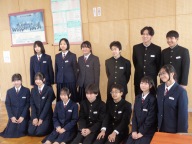 昨年12月の生徒会役員選挙で選出された来年度の生徒会長・副会長。そして公募と面接等で選出、委嘱により生徒会本部役員、各専門委員長と来年度の生徒会のリーダーが決まりました。
