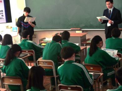 今日の3.4時間目は総合的な学習の時間です。先日から5月の修学旅行に向けて準備を始めた2年生。今日は2日目に予定している「グループ別研修」のコースを考えます。限られた時間の中で、いかにグループみんなの想いを調整しながら、無駄なく効率よいコースを考えることが重要です。担当する旅行業者の方を講師にお迎えして、京都市内を知るための学習会を行いました。