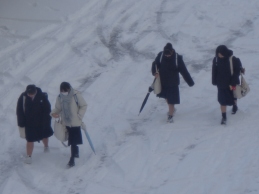 土日に降った雪で、せっかく雪の溶けた校地内はまた一面真っ白になりました。寒波のピークは過ぎたと報じられています。卒業式も近づいています。降雪のないことを願っています。