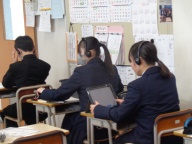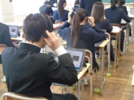一中は明後日18日(水)に実施予定です。このテストはタブレット端末を使って行うもので、操作が少し難しいテストです。テスト本番をスムーズに行えるよう、今日の午前、2年生は各クラスで練習としてのプレテストを行いました。