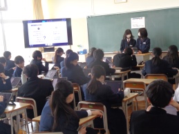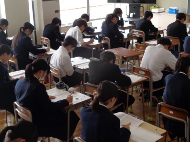 2時間目、2年1組の様子です。ヘッドホンをつけて聞き取りながら解答を進めています。