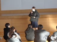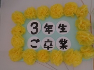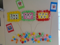 新生徒会副会長が「三送会」について呼びかけを行いました。給食コンテナ室わきの壁面に衛生委員会1・2年生で「卒業おめでとう」の飾りを作り、展示しました。3年生の卒業に向け、2年生が引き継ぐ意識が高まっています。