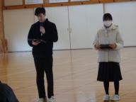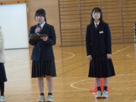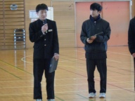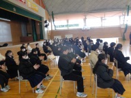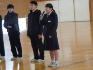 今朝は3学年朝会でした。学級閉鎖だったクラスも今日から登校し、久しぶりに全クラスがそろいました。今日は対面式の卒業式スタイルでの学年朝会です。最初に後期学年委員を務めた生徒が感想を伝えました。何度も務めてきた生徒、3年間で初めて務めた生徒と様々ですが、みんな学年のために一生懸命頑張ったこと、協力的な学年の温かさを感じたこと、自分自身も成長できたことを口々に伝え、感謝の想いを伝えました。学年のみんなは大きな拍手で労い、讃えました。