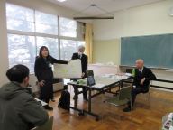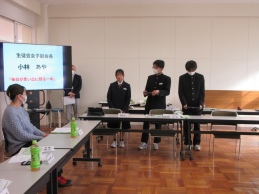 続いて来年度の生徒会長、副会長が「一中をこんな学校にしていきたい」「そのためにこのことをがんばる」と力強く伝えました。委員の皆さんから質問やアドバイスを受けながら、目指す生徒会活動に自信を持つことができました。