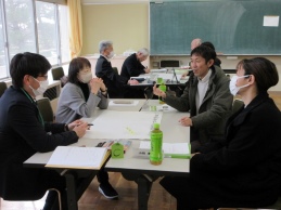 最後は少人数グループで「地域行事と学校の連携」「生徒の放課後の居場所づくり」「地域人材の学校での活用」をテーマにディスカッションを行いました。そこで話し合われたことを8年度第1回学校運営協議会で具体化し、実践していきます。