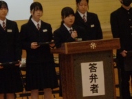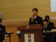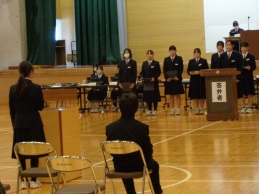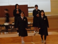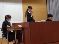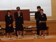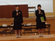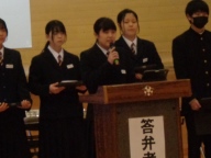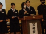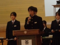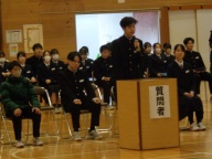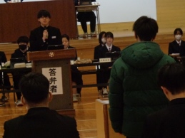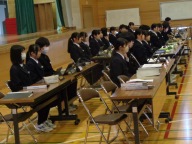 生徒会本部や各専門委員会、各部の活動報告と質疑を行いました。今年度は「~がよかったので継続してほしい」「~だから、ぜひこうしてほしい」という前向きで建設的な意見が数多く出されました。全校生徒は今年度のみんなの頑張りを「承認」しました。今年度は学校創立50周年の記念・節目の年度であり、それに伴う活動が通常の活動より多くありました。それがやりがいになり、活動が活性化しました。寄せられた建設的な意見を活かして来年度の生徒会活動のさらなる充実を期待しています。