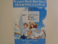 対談の壁には「3年生ありがとうンサート」のポスターが掲示してあります。吹奏楽クラブが27日(金)の昼休み、卒業を祝うコンサートを行います。