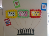 衛生委員会が作成した卒業を祝う掲示物は白根の凧合戦をイメージしています。地域行事でもがんばった3年生です。