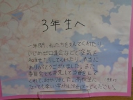 今週は「三送週間」として、卒業する3年生に1・2年生から感謝や応援など様々な想いを伝える週です。後者の様々な場所にその想いが感じられます。