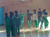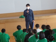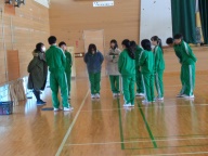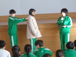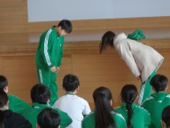 挨拶が重点の今週、そのことを意識するために今日は簡単なレクリエーションを行いました。いわゆる「じゃんけん列車」のじゃんけんをする前後に「おねがいします」「ありがとうございました」とあいさつをするものです。学年委員が実際にやってみせました。いざはじまると、楽しそうな笑い声とともに元気のよいあいさつの声が響きました。