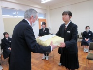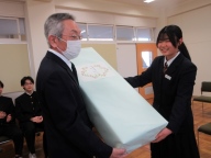昨日の放課後、贈呈式を行いました。南区社会福祉協議会長様にお越しいただき、「地域の福祉に役立ててください。」と寄贈品を贈呈しました。