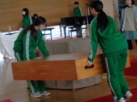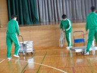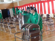 その後、卒業式の会場を中心に後片づけを行いました。進んでやるべきことに取り組む姿、考えながらてきぱきと片付ける姿、力を合わせて片付ける姿に一中をこれから担う意欲を感じました。
