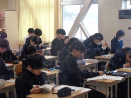 今日の朝の時間は「心の健康チェック」でした。後期終業式まであと10日。心配していることや悩んでいることがないか、もしあればすぐに解決して心が楽になるためのアンケートです。1年間がんばり抜いた清々しい気持ちで終業式を迎えられるよう、残りの10日間を充実させていきます。
