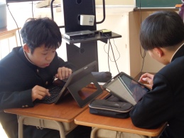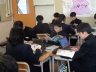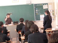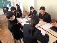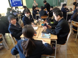 4時間目は道徳の授業です。思春期真っただ中の2年1組、今日は「中学生の男女のかかわりはどうしたらうまくいくだろう」が課題です。好きな異性がいて、そのことが気になって学習などに身が入らない女子生徒の悩みを学級担任の先生が朗読し、意見交換をクラス全体やグループで行いながら、「どうアドバイスするか」について様々な考えを共有し、ゴールのまとめに到達しました。異性に対してのテーマに、しっかりと向き合いました。