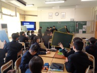 明日が令和7年度の授業最終日です。年度終わり目前ですが、より良い授業を目指しての授業改善の取組は止まることなく最後まで続きます。今日は3つの教科で公開授業を行いました。