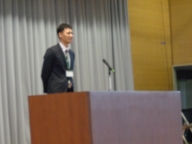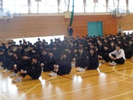 生徒は登校後、新しい教室に荷物を置き、体育館に集合です。最初に新任式を行いました。今年度、3名の教職員が一中に転入しました。自己紹介後、生徒会長が代表して歓迎の気持ちを伝えました。