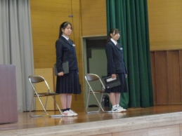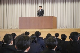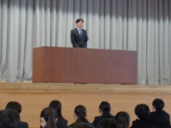 続いて令和8年度始業式です。2・3年生代表生徒が新年度の抱負を発表しました。2人とも明確な目標と具体的な取組がしっかりと述べられ、新年度への意欲が感じられました。