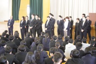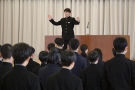 熊谷校長は「今、心にある『こうなりたい』を本気で実現させる1年にしよう。『アクション』『シンキング』『チームワーク』の3つの力をしっかりと身につけよう。50周年超えを目指し、さらに明るくエネルギー溢れる、強いきずなの一中をみんなで作っていこう。」と伝えました。