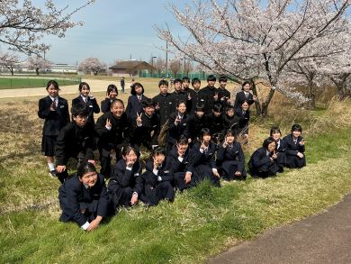 昨日、1年生は学年集会後、学校近くの運動公園に出かけ、お花見と記念写真撮影を行いました。青空の下、きれいな桜の下で新しい仲間と一緒にいると自然と顔がほころんできます。緊張していた1年生。少しリラックスできて、良いスタートになったようです。