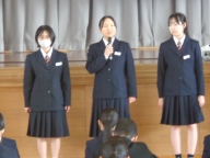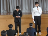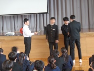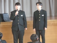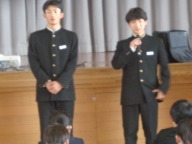 最初に前期学年委員が抱負を伝えました。毎年経験している生徒、3年生になり始めて務める生徒と経験は様々ですが、共通した願いは「学年全体のさらなる成長」。最高学年のリーダーとしての自覚が感じられました。