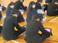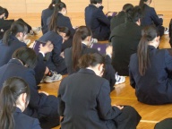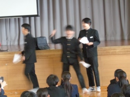 続いて来月に実施する修学旅行の1日目クラス別研修のコース決めを行いました。3クラスとも同じ方面を希望したため、クラス代表の抽選で決めました。見事あたりを引き当てた生徒は飛び上がって大喜びです。3クラスそれぞれの見学方面が決まりました。担当の先生から1時間目の学活で行う事前学習の説明がありました。