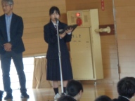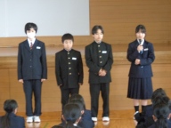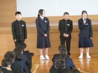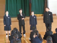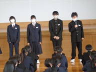 今日は学年、クラスのリーダーとなる学年委員がみんなの前で抱負を伝えました。「私の理想とする学年は」で始まり、目指す学年の姿を堂々と伝え、そのために自分が取り組むことを自分の言葉で伝えました。学年のみんなは大きな拍手で協力する気持ちを伝えました。