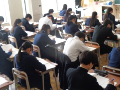 1時間目は国語、2時間目は数学です。真剣に問題に向かう姿が見られます。