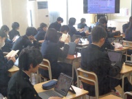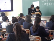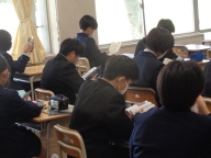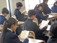 今日の朝は昨日に続いて生徒総会に向けた議案書読みです。今日も生徒会本部の生徒が1年生のクラスに行き、サポートしています。議案書読みを終えた生徒は朝読書に取り組んでいます。