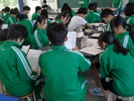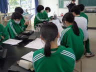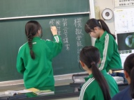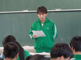 今日の放課後、生徒会本部と各クラスの学年委員が集まり、「模擬学級討議」を行いました。学級討議では学年委員がクラスの話し合いを進めたり、意見や要望をまとめたりします。学級討議を目的通りに進めることができるために、学年委員が体験し、学ぶ機会を設けました。生徒会長がクラスの討議を進行する学年委員の役を務め、討議の進め方をやってみせました。1年生をはじめ、初めて学年委員を務める生徒は安心です。