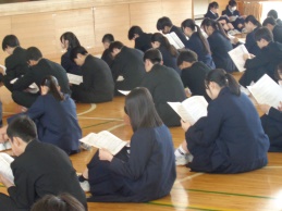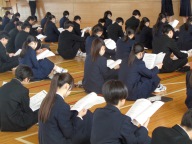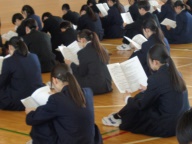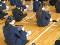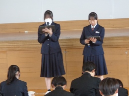 続いて来月実施の修学旅行に向けたしおりの読み合わせを行いました。実行委員が決まりや日程などを説明し、みんなでしおりで確認しました。明後日から大型連休です。修学旅行の準備もしなくては!