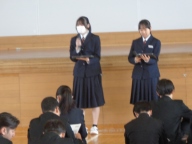今朝は3学年朝会でした。最初に学年委員会から「学年スローガン」作成のアンケート依頼がありました。中学校生活最後の1年、最上級生としてこんな学年になろう!という想いを表すスローガンを作ります。どんな言葉を盛り込みたいか、学年委員会の案を参考に学年のみんなの思いを募りました。今後集約して、スローガンの形にします。