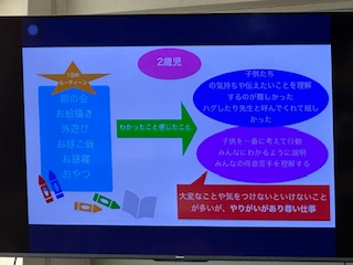 職場体験で得た気付きや学びをまとめて発表し合いました。