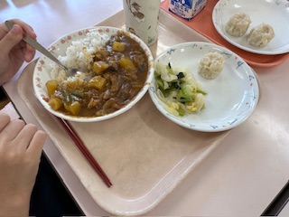 2学期がスタートしました。今日から全校給食も始まりました。ランチルームや教室で食缶から給食を盛り付けます。みんなで協力しておいしい給食を満喫しました。