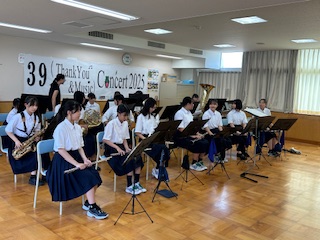 毎年恒例の吹奏楽部による39(サンキュー)コンサートを行いました。夏休み中ですが、保護者、地域の皆様、生徒、職員が集まり、楽しい時間を過ごしました。Thank you!