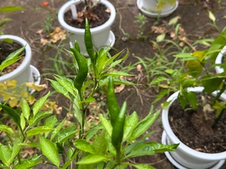 技術の授業で育ててきた野菜が実りました。猛暑、酷暑で厳しい環境の中、葉が焼けてしまった鉢もありましたが、がんばりました。