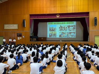 各部より市内大会の結果報告を行いました。どの部も全力を尽くしてがんばりました。上位大会に出場する選手を激励して、吹奏楽部の演奏とともに、全校生徒で応援歌とエールを送りました。 ご来校いただいた …