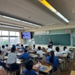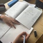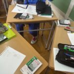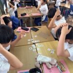 英語 英語で先生が単語の説明をして該当するカルタを探しました。 数学 根号を含む式の計算方法をグループで検討します。電卓で検算も。 社会 学習の振り返り。じっくりまとめたノートが役に立っています。