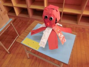 1年生 箱で作った大きなたこさん 4年生 コリントゲーム