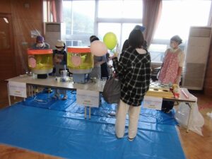 5年生が売り子になったお米販売も,6年生が手伝ったバザーも大盛況でした。ポップコーンやわたあめのいい匂いが,校舎まで伝わってきました。また、校内ウオークラリーでは,子どもたちがクイズを解いてお菓子をたくさんゲットして喜ぶ姿がありました。みんなの笑顔があふれる楽しい一日でした。