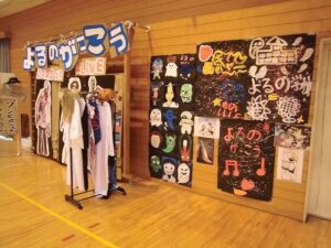 体育館ではクラブ作品や夏休みに開催された「よるのがっこう」メモリアルパネル,庄瀬公民館作品の展示,「庄瀬のいいとこみーつけたっ!写真展」の投票もありました。また、ほっとひといき無料喫茶コーナーやボディーペインティング,匂い袋づくりワークショップも楽しかったです。