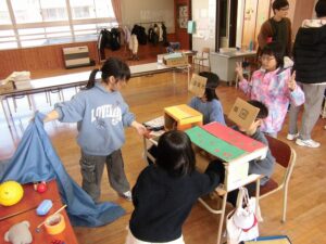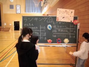 今日は「ひまわりフェスティバル」でした。今まで,昼休みに縦割り班で集まり,出店で何をするか考えたり準備したりしてきました。当日は,兄弟班で交替してお店のお仕事をしたり,他の班の出店を回ったりして楽しみました。