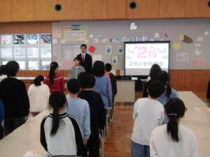 生活指導では,今月のめあて「ありがとう上手になろう」の話でした。周りの出来事や自分を支えてくださっている人たちに,感謝の気持ち「ありがとう」をたくさん伝えて,自分も周りも気持ちのよい雰囲気にできるといいですね。月末には「6年生を送る会」があります。お世話になった6年生にも,温かい気持ちで中学校に送り出せるようにしていきたいです。