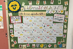 今年もお楽しみ献立の時期がやってきました。6年生1人1人が考えたメニューの中から、食べたいと思うメニューを選んで投票します。保健室前の掲示板に貼られると、早速みんなが集まる姿がありました。今年は誰の …