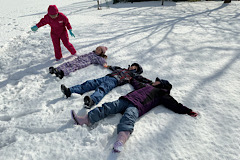 1、2年生が生活科の学習で雪遊びをしました。雪だるまを作ったり、雪合戦をしたり、雪の上に寝転んだり、みんな思い思いに雪を楽しんでいました。天気にも恵まれてよかったです。