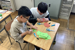 今週末に迫ったスマイルフェスティバルに向けて、準備が進んでいます。昼休みは、全校の子どもたちが各班に別れて、出店の紹介や小道具、ポスター作りなどを行なっています。どの班も子どもたちが生き生きと楽しそうに活動しているのが印象的です。