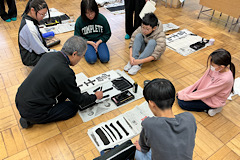 今年も新潟大学教授の岡村浩先生にお越しいただき、3年生から6年生の子どもたちに書き初めの指導をしていただきました。子どもたちは、岡村先生からお手本を見せていただいたり、個別に声をかけていただいたりしながら、書の基本を学ぶことができました。学生の皆さんにもサポートしていただきありがたかったです。冬休み明けには全校一斉で書き初めを行う予定です。子どもたちには、冬休みを利用して腕を磨いてほしいと思います。