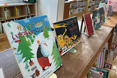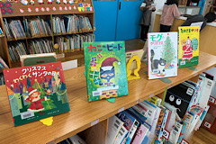 図書室にはクリスマスにまつわる絵本がたくさん並んでいます。